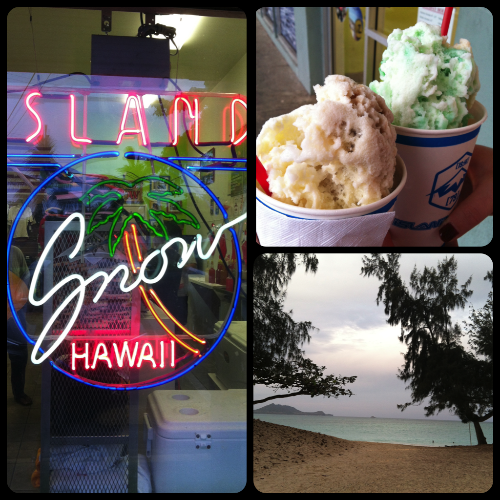 I’m a big fan of all things pop culture and main stream and made two goals for myself when I came to Hawaii: 1) stalk the cast of Hunger Games since they are shooting in Hawaii and 2) Do all things President Obama does while he is in Hawaii. Goal one is a little difficult to execute because everything is super top secret when it comes to filming….however i have bot given up hope! Goal 2 was easy to gather intel on because anything Obama does is instantly written about. I discovered his favorite snow cone place – Island Snow in Kailua. When Doc came home from her shift I convinced her that we must go – even though it was on the opposite side of the Island. It was well worth the drive!! The staff was super friendly and helped us with our order since we were so overwhelmed with all the options. Doc ordered a fruity watermelon flavor snow cone and I got a coffee/coconut/pineapple flavor.