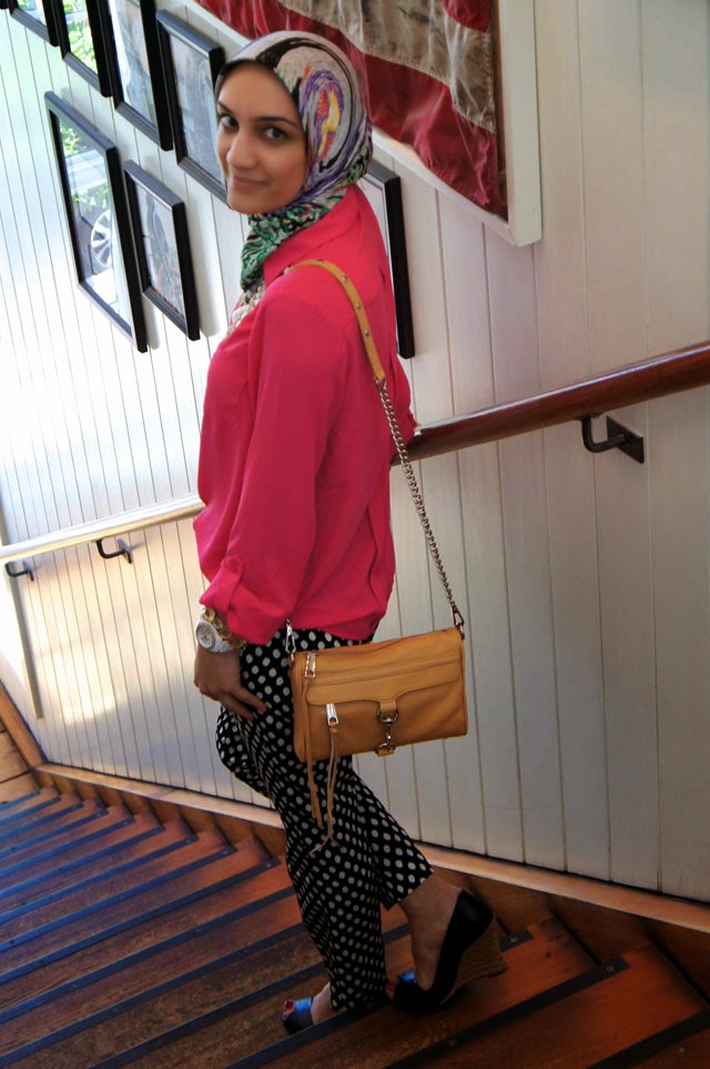 Top: The Limited | Pants: Banana Republic | Shoes: Banana Republic | Purse: Rebecca Minkoff | Necklace: BaubleBar | Bracelet: BaubleBar | Watch: Fossil | Scarf: {Gifted}