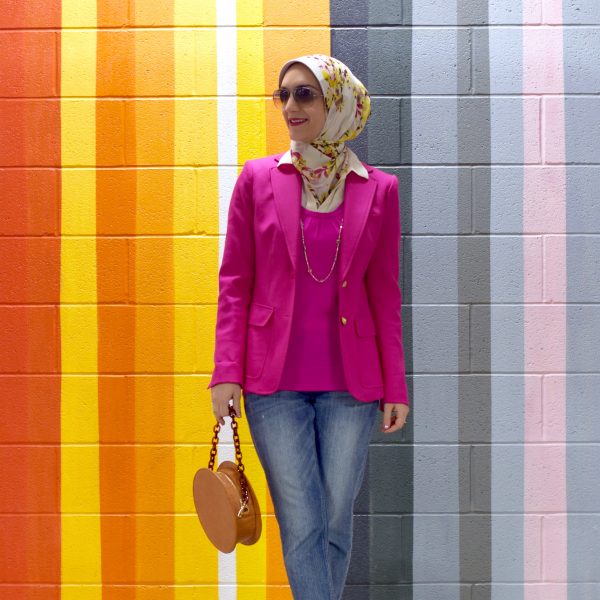 When I’m in a fashion pinch I stick to one color palette – silver in this case – from head to toe and just add a patterned scarf! This HH scarf is one of my favs and always comes in handy for a girls night out! You can’t go wrong sticking to one color palette! What’s your go to color?!