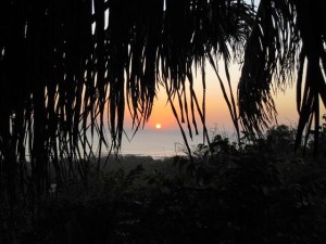 Sunset view from out balcony at Hotel Buenisimo in Santa Teresa