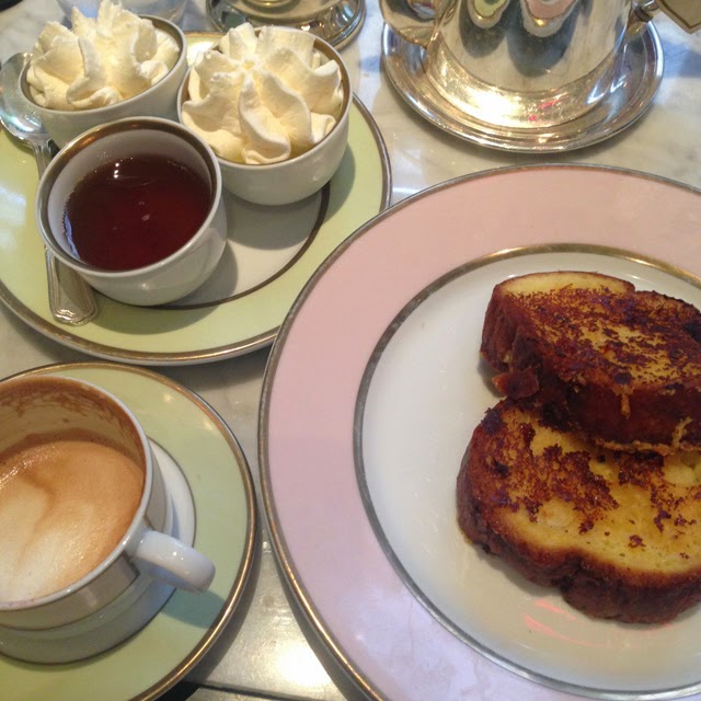 My obsession with Ladurée is not a secret. Therefore when I found out they opened up a Ladurée cafe in SoHo – it was on my priority list of places to go in NYC. We went to Ladurée for breakfast on Sunday. There is no camera photography allowed inside – only phones – therefore all these pictures are courtesy of my iPhone (not DSLR quality pics obviously!). The decor of the place was impeccable. I legit felt I was taken to Versailles and was dining in France. I had a cappuccino, chocolate croissant, french toast, and a macaron. It was all delicious!