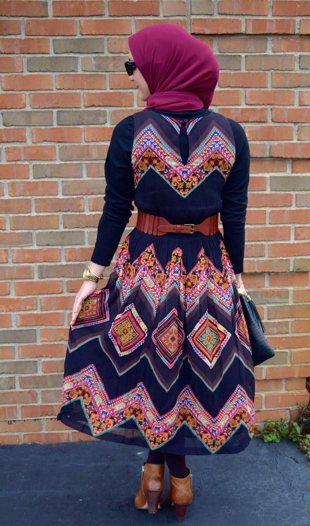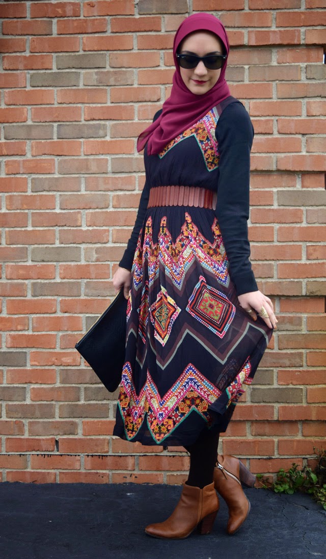Sweater: The Limited | Dress: Anthropologie | Scarf: Haute Hijab | Belt: Anthropologie | Booties: DV by Dolce Vita |