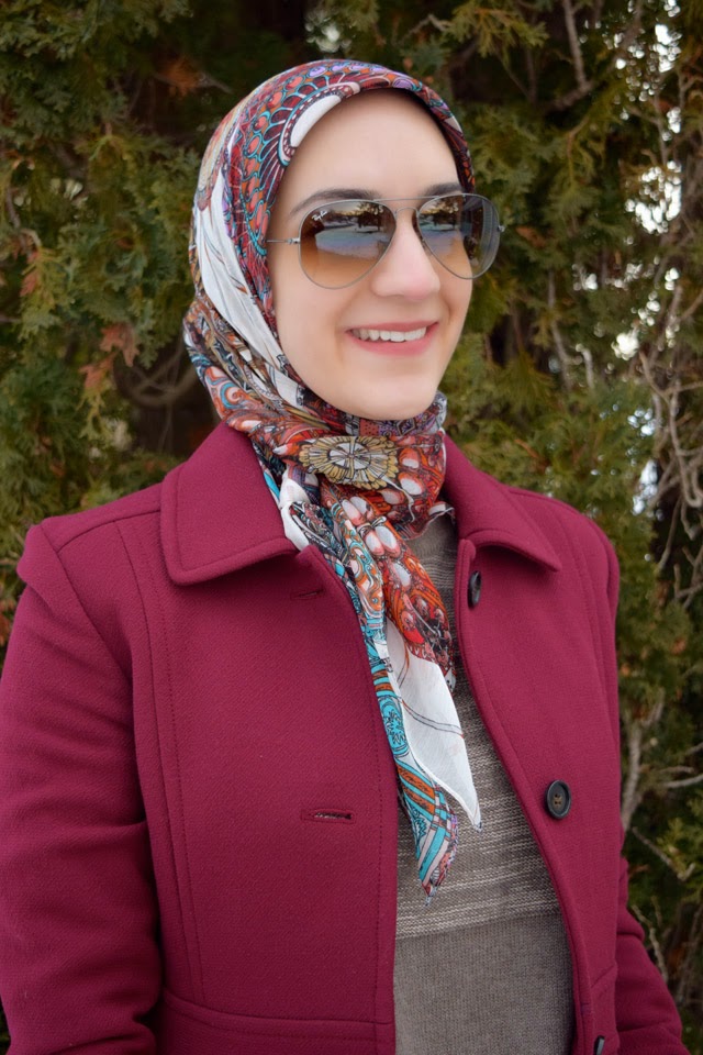 Jacket: J. Crew | Sweater: The Limited | Jeans: The Limited | Scarf: Haute Hijab | Shoes: Sole Society (old) (similar) | Sunnies: Ray-Ban | Clutch: Gift (similar) | Lips: M.A.C. Hot Tahiti