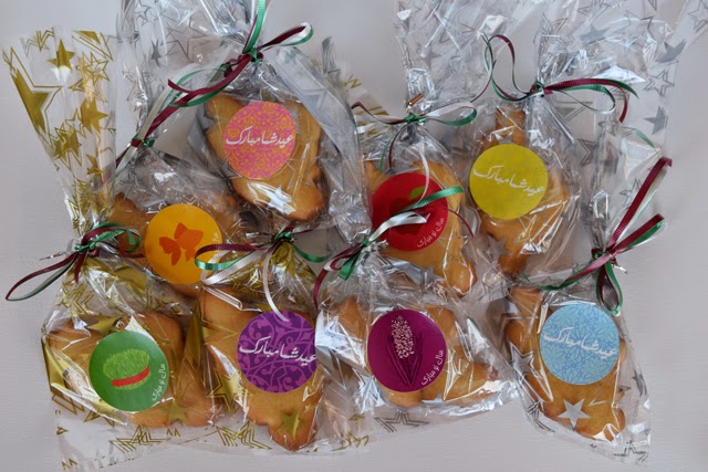 I always use the delicious Corilynn Sugar Cookie Recipe – seriously best recipe ever! This recipe yielded 32 cookies using the Golreezan Iran Cookie Cutter. Once the cookies were baked and cooled down I placed a cookie in the loot bag – which I got from the dollar store. I decorated the bag with these adorable Golreezan Nowruz Stickers and topped it off with some ribbon.