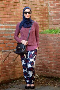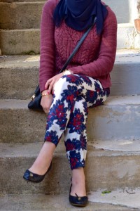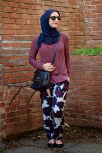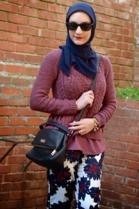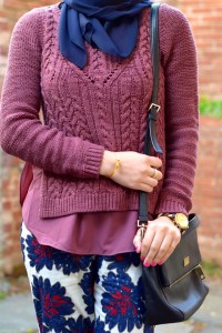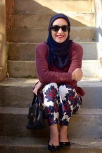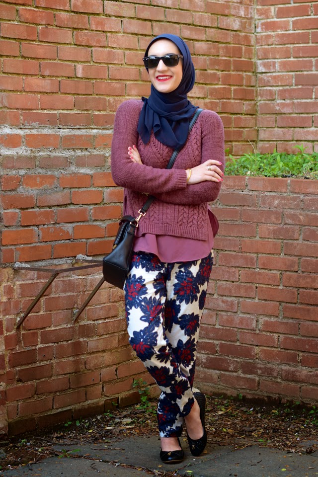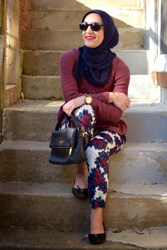 Sweater: Anthropologie (sold out) | Pants: J. Crew | Scarf: Haute Hijab | Bag: Kate Spade | Shoes: Sperry | Sunnies: Ray-Ban | Watch: Michael Kors | Bracelet: Rocksbox | Lips: Stila Beso
