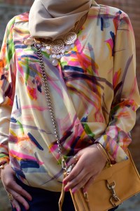 This shirt (last seen here) reminds me of that Pocahontas song “Colors of the Wind” for no apparent reason. Maybe it’s due to all the brushstrokes and vibrant colors. I am also very much drawn to this top because it is versatile for all seasons. I try not to purchase items that bind me to just one season of wear. Versatile pieces are always my go to! This top can be worn in the summer with some white linen pants, in the fall with a vest, and in the winter paired with a lovely cashmere sweater. Versatility is key for me when purchasing items and it proves to be useful in the long run – think cost per wear!