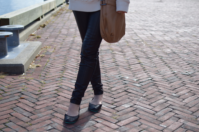 Sweater: J. Crew | Leggings: Anthropologie | Scarf: Nordstrom | Shoes: Tieks | Sunnies: Karen Walker | Cross body Bag: Kenneth Cole (similar on sale!) | Bangles: Alex & Ani | Lips: Stila Aria