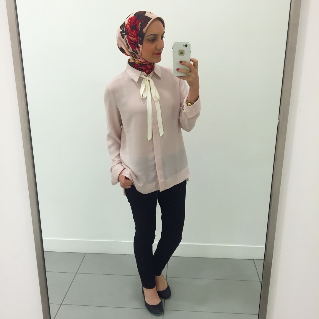 Blouse: Banana Republic (sold out but similar) | Pants: Banana Republic | Scarf: Haute Hijab | Flats: Tieks