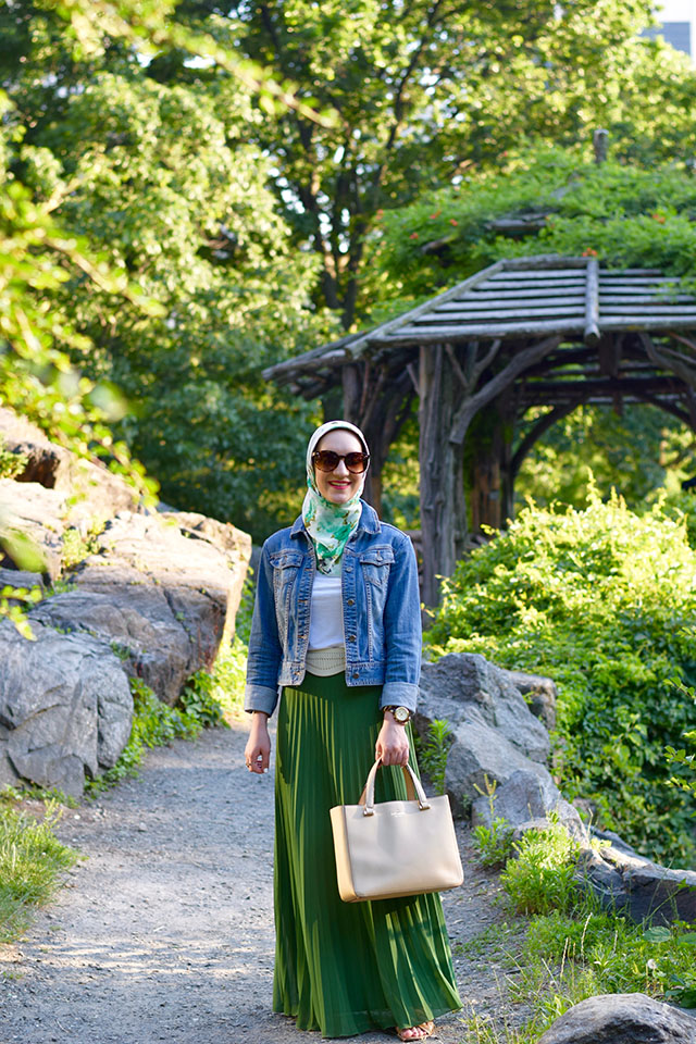 Pleated maxi skirts are one thing that never go out of style. I’ve had this green gem in my closet for about 4 years! This past weekend while I was in NYC the summer heat was the perfect time to pull out this breezy skirt for a day full of activities in the city. To keep the look casual I paired the skirt with a tee & denim jacket and some comfortable sandals. I’ve linked below to a ton of affordable pleated maxi skirts that are perfect for summer!