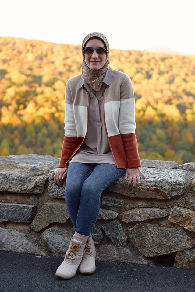 Jacket: Banana Republic (old, similar) | Denim: Banana Republic | Blouse: Nordstrom | Scarf: Free People | Boots: Sperry | Sunnies: Ray-Ban | Lips: Huda Beauty in Trophy Wife