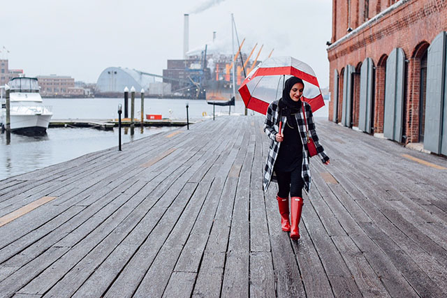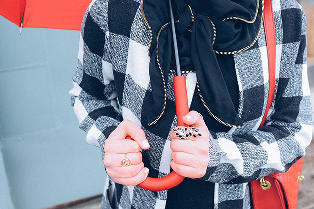 It’s been raining and super foggy here for the past few days. I’m not a fan of the gloomy weather but it’s a good excuse to bus out my red hunter boots (currently on sale here)!! I’ve recently been wearing this checkered coat a ton because it is perfect for layering. It can be worn on it’s own or layered with another long coat. I can’t wait for warmer weather to style it with white pants!