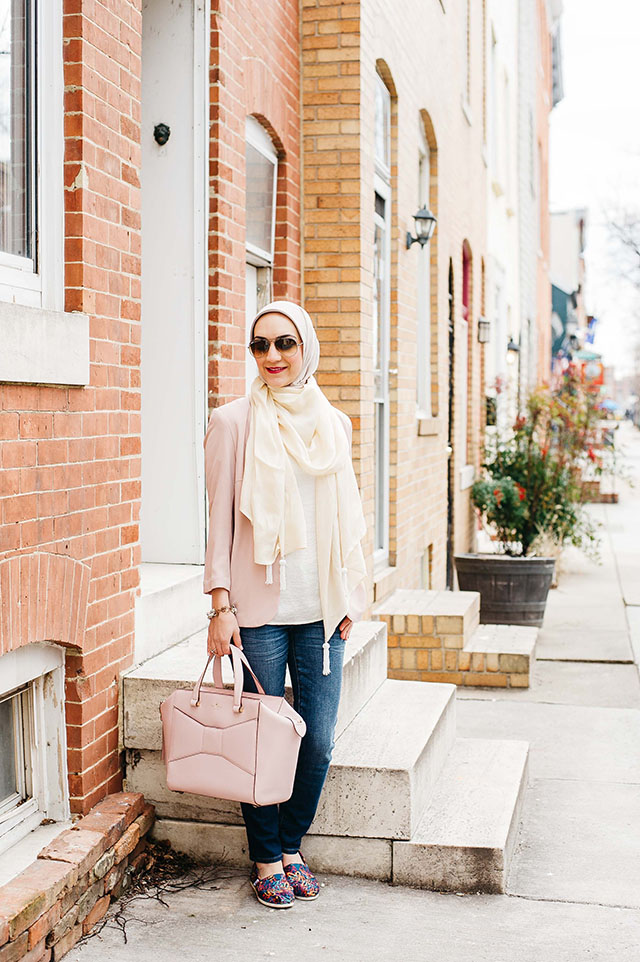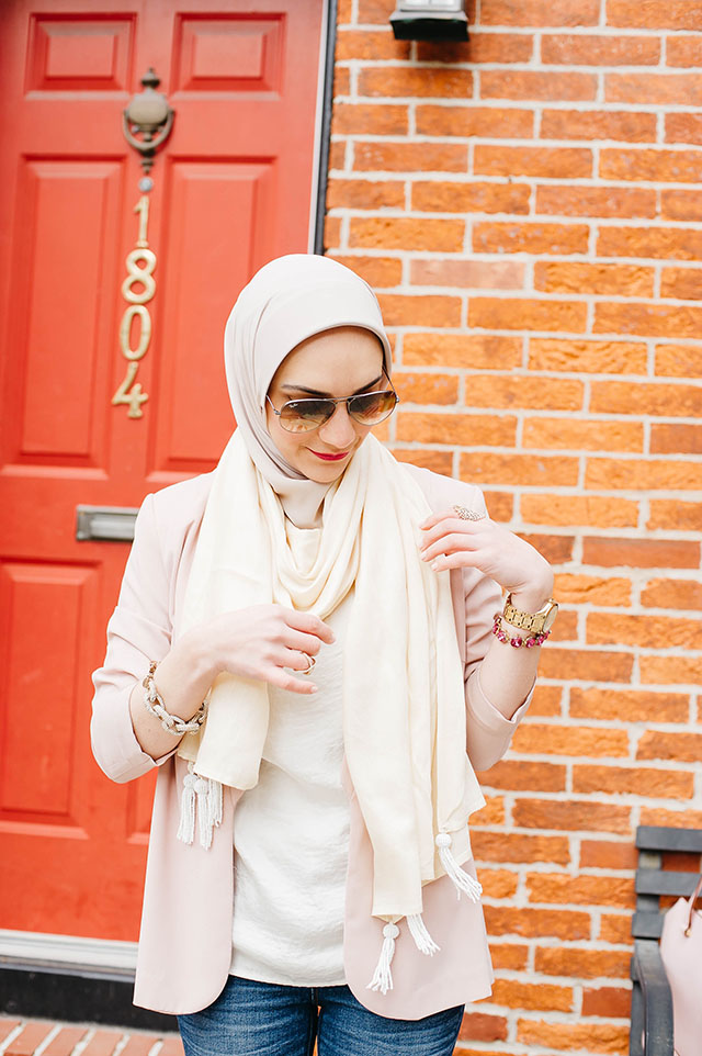 Blazer | Top | Jeans | Shoes | Scarf | Sunnies | Shawl | Bag | Bracelet | Lipstick