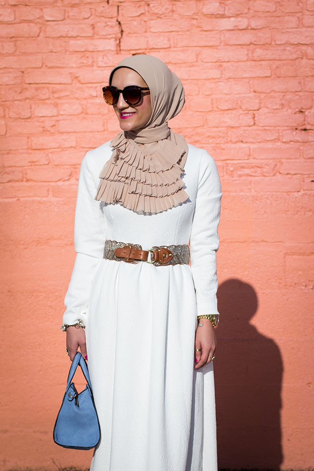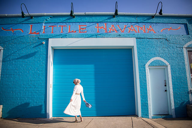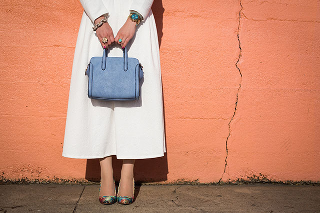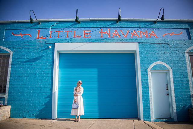 Last week the weather was spring like and absolutely perfect. I decided to take my new white flare midi dress out for a spin and visit these color walls and pretend like I was in Havana for the morning. I’m sucker for a feminine fit and flare midi dress. This one wins in my book because it’s long sleeve and the perfect modest length and I love the rose embossed pattern on the dress. I don’t own many white dresses in my closet, mostly because I am afraid to get it dirty, however I know this one will be around for a while. I’m excited to pair this dress with flats and a jean jacket for a more casual look. A classic midi dress can always be dressed up or down! I love this dress in contrasts to the colorful walls and I’m pretty sure I will be wearing it a lot this spring and summer.