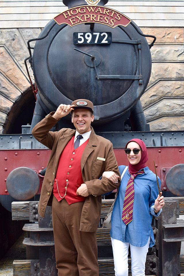 6. Hogsmeade: At this point it’s probably before noon and it’s in your best interest to head straight to Three Broomsticks and order lunch before the lunch crowd hits. I would recommend the fish and chips and the frozen butterbeer! It really hits the spot! Afterward head straight to Harry Potter and the Forbidden Journey inside Hogwarts. The ride gives you the chance to explore inside the Hogwarts School of Witchcraft and Wizardry. In Homemade the other rides to check out are Dragon Challenge and Flight of the Hippogriff. This time around we skipped Flight of the Hippogriff because it is a very short ride and very underwhelming in my opinion. Once you have the rides out of the way take your time to explore Hogsmeade. Be sure to explore Olivanders and Owl Post, Dervish and Bangers, Filch’s Emporium, and grab some delicious treats at Honeydukes. My favorite souvenirs to pick up from Honeydukes are the chocolate wands, jelly beans, and chocolate frogs. Note that any shopping you do at the park you can ask one of the helpful wizards to send your bags to the front entrance of Universal to pick up at the end of the day. Before leaving Hogsmeade be sure to snap photos with the conductor of Hogwarts Express!