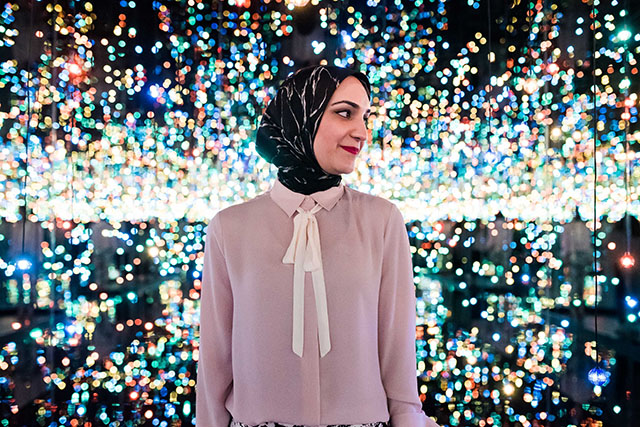 I should also mention that photography is no longer allowed in the Pumpkin infinity room. Back in February there was an incident with a selfie and a broken pumpkin (read about it here) and since then no more photography is allowed. For this infinity room a staff member also known as the “pumpkin protector” enters with the visitors to show them the room and make sure all pumpkins stay perfectly in tact 🙂 You are allowed to snap a quick photo (see below) before entering the All The Eternal Love I Have For the Pumpkins infinity room, just ask the wonderful staff and they will allow it before you step into the room.
