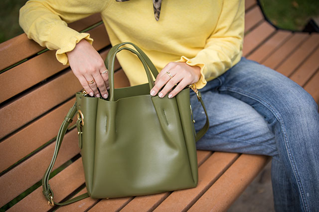 I’m loving this olive colored tote for fall and it has proven to go with a ton of my fall outfits. I’m a huge fan of versatile bags and I love that this tote can be worn cross-body or carried as satchel. It is extremely spacious – I was able to fit my DSLR camera in it during my trip to New Orleans – and the color screams fall!