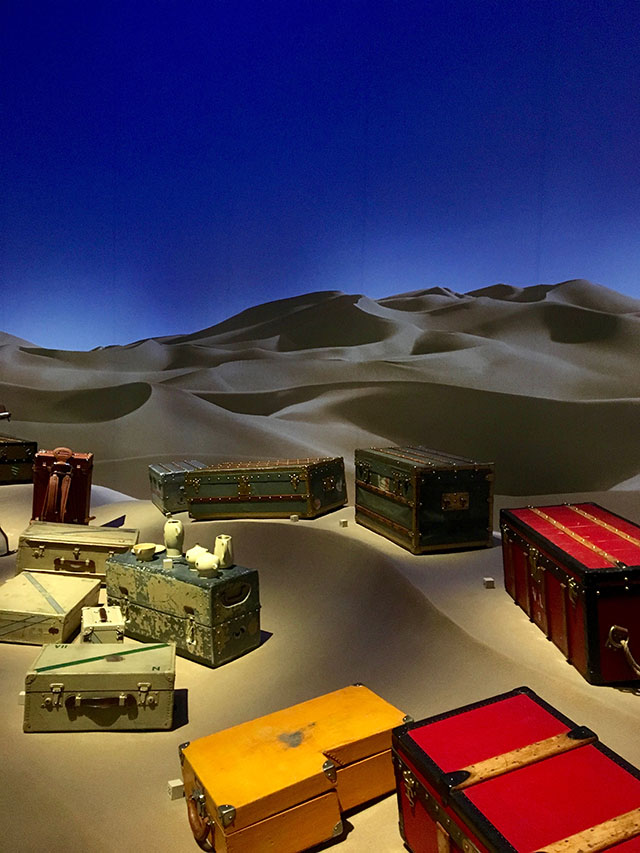 The exhibit provides complimentary audio guides. The LV journey is divided into ten chapters. The tour opens with the most symbolic object of the House: the trunk, “a model fashioned with contemporary flair, embodying the iconic hallmarks and bold spirit of Louis Vuitton.” There are several rooms to snap the perfect photo so be sure to bring your camera along for the adventure.