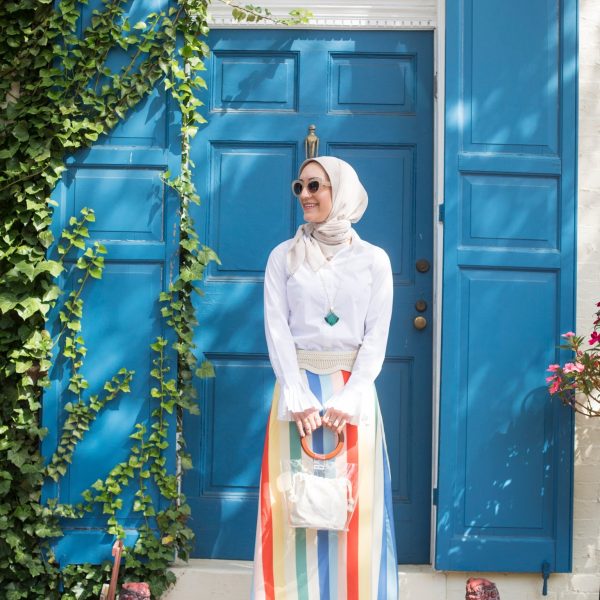 Blazer: SheIn c/o | Shirt: Ann Taylor | Denim: J. Crew | Scarf: Haute Hijab | Heels: Banana Republic | Bag: GiGi NY | Sunnies: Nordstrom | Ring: Kendra Scott c/o | Lipstick: MAC