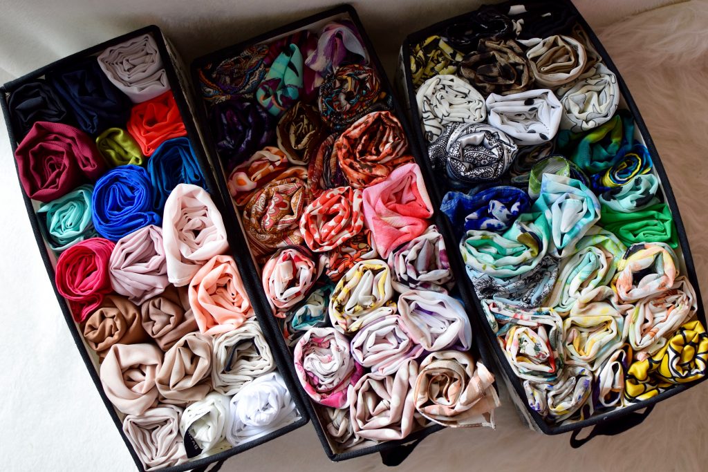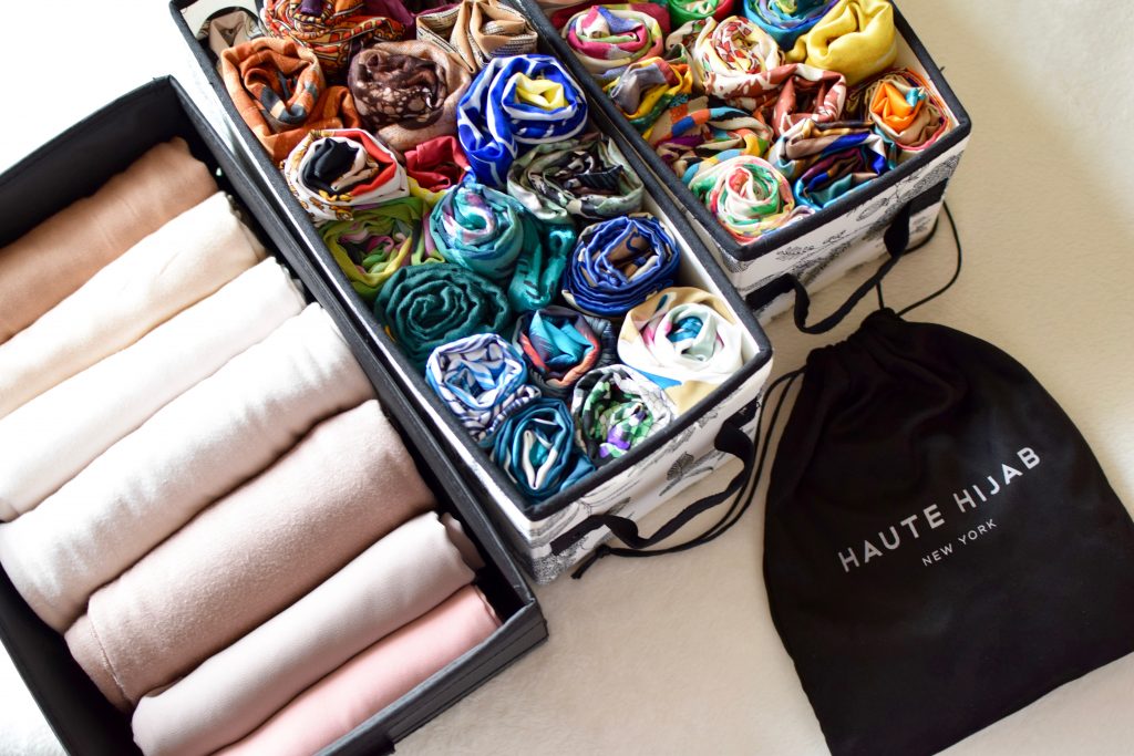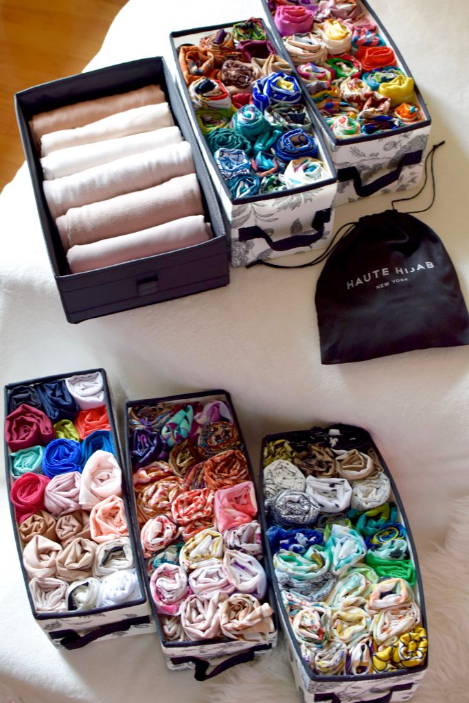 I have a ton of hijabs and in order to keep track of them I have to be organized. Since I live in an apartment and I have limited closet space, I’ve had to get creative in organizing all my scarves!