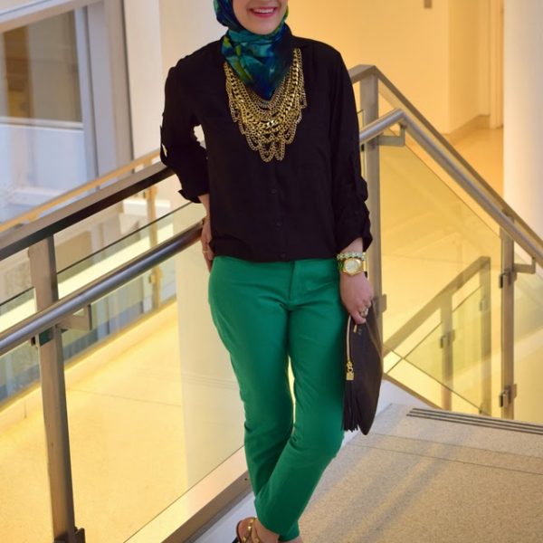 Sweater: Nordstrom | Pants: Banana Republic | Scarf: Haute Hijab | Booties: DSW (old, similar) | Blanket Scarf: ASOS | Bag: Rebecca Minkoff | Sunnies: Nordstrom | Lipstick: NARS Audrey