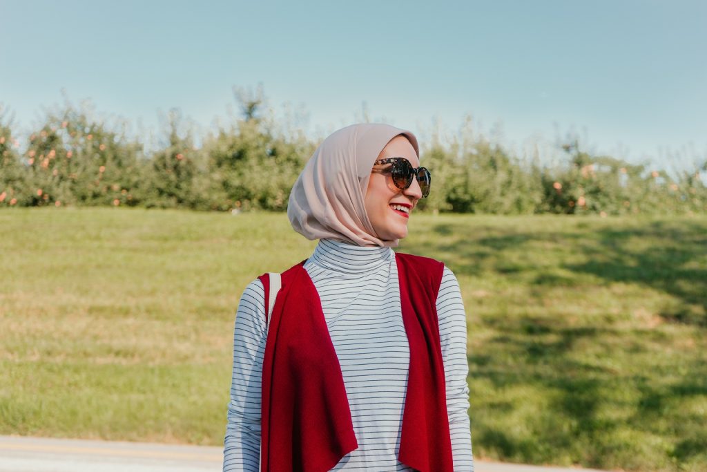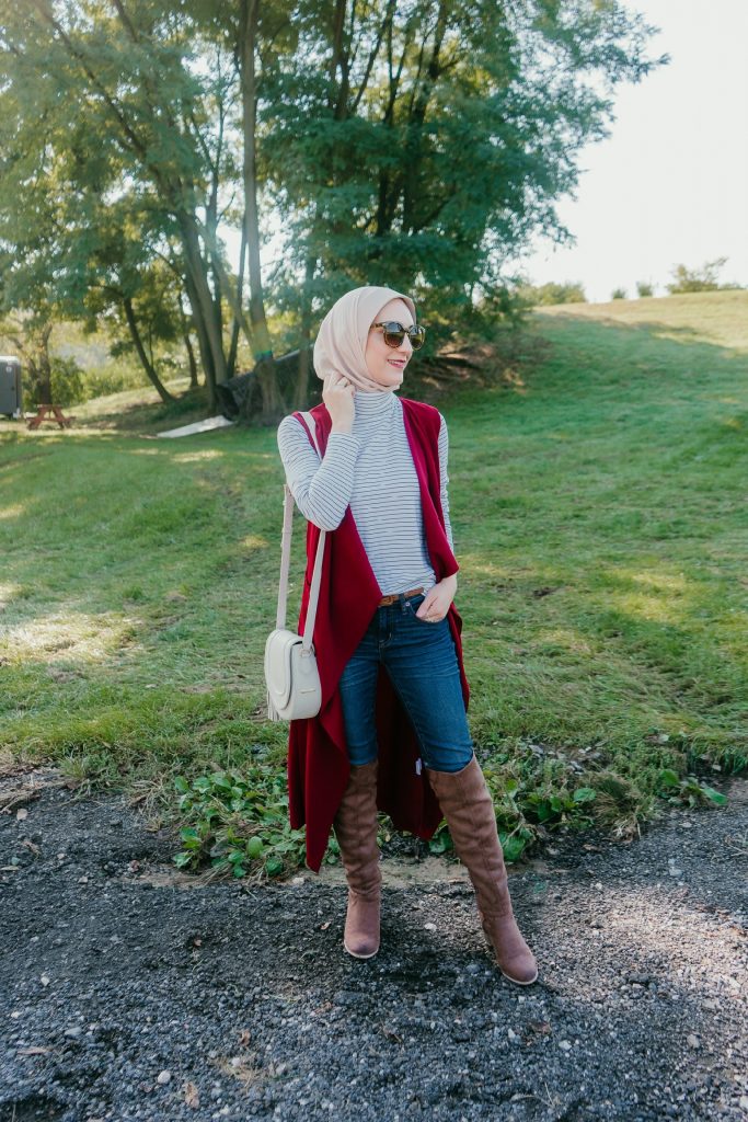 Vest: SheIn c/o | Top: Banana Republic | Denim: Banana Republic | Scarf: Haute Hijab | Belt: J. Crew | Bag: GiGi NY | Boots: DSW (old, similar) | Ring: Kendra Scott c/o | Lipstick: NARS Audrey