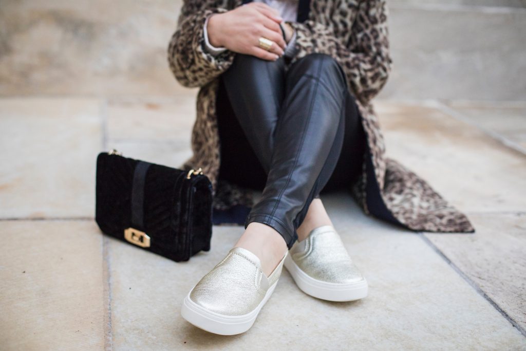Leopard and Leather are two of my favorite winter trends. I bought these vegan leather leggings from the Anthro clearance rack four years ago for $20 – best purchase ever! I wear them non stop during the winter season and surprisingly they are super warm. My favorite way to style these leggings is with a statement coat and comfy shoes for a day out running around the city.