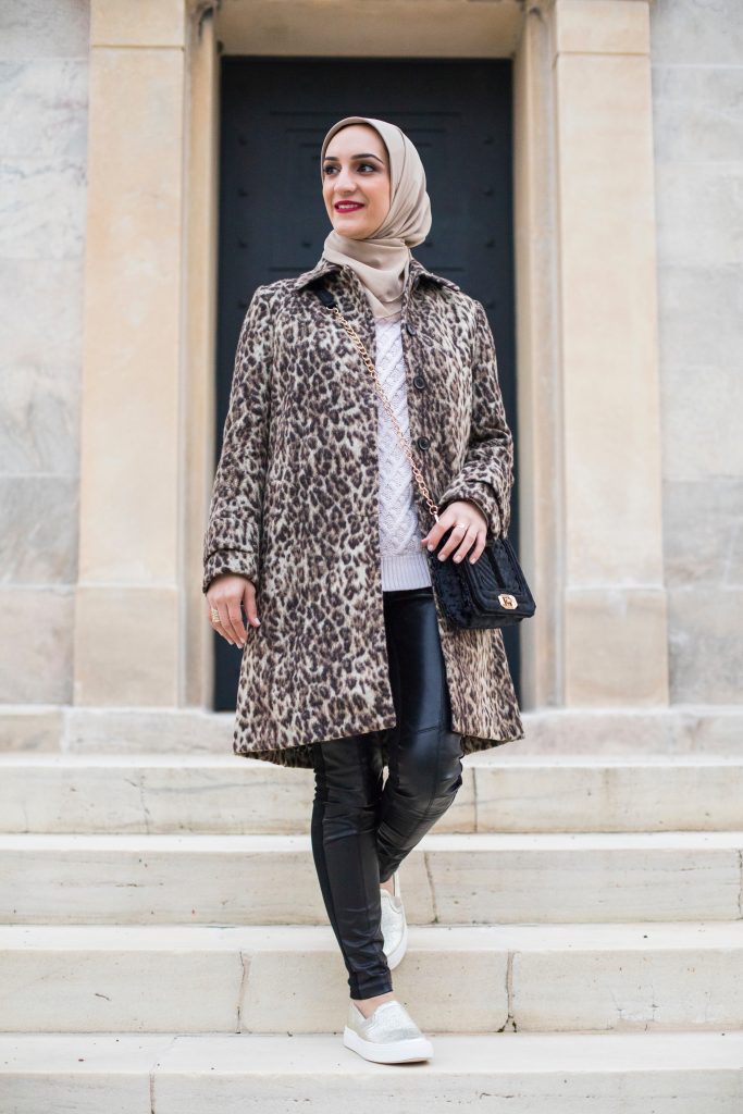 A casual winter look featuring my absolute favorite leopard top coat and vegan leather leggings!