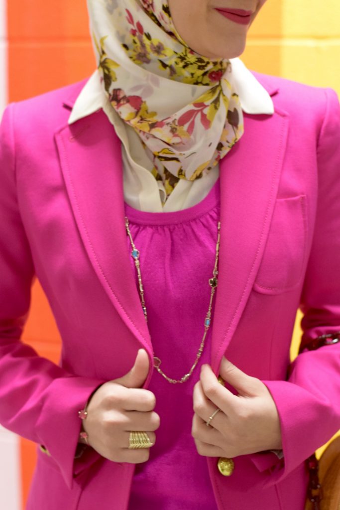 Most people are tidying up and have jumped on the Marie Kondo tidying up bandwagon. Sadly I can’t relate because I’m a type A person who is highly organized! As a habit I purge my closet every season and keep a running list of things I need/want and wish list items I’m saving up for. I prefer to have fewer pieces however higher-quality investment pieces. After watching all the episodes of Tidying Up on Netflix I did learn a few things from Marie’s method. My biggest takeaway from the show is to wear the pieces in my closet that bring me joy. This hot pink blazer brings me a lot of joy!