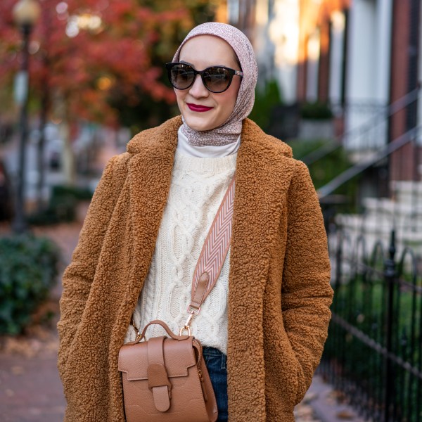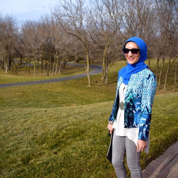 Blazer: Veronica Beard via RTR Unlimited | Top: Banana Republic | Denim: Rachel Parcell | Scarf: Haute Hijab | Heels: Nordstrom | Bag: 3.1 Phillip Lim via RTR Unlimited | Sunnies: Anthropologie (old, similar) | Lipstick: MAC Feel So Grand