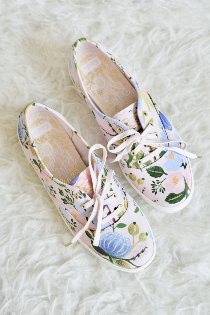 I came across these pretty floral sneakers while browsing Nordstrom online. I instantly fell in love with the floral spring pattern and ordered them immediately. I have been a fan of Rifle Paper Co. for a very long time and adore their vibrant floral print stationary. I love the Purple Sneakers and the size 7 fit perfectly, however the Pink Sneakers are canvas material and run a little big therefore I had to exchange them for a smaller size.