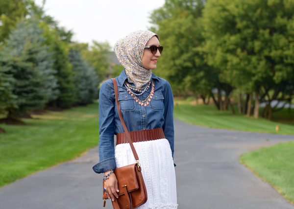 Top: Sezane | Denim: Anthropologie (old, similar) | Scarf: Haute Hijab | Wedges: Castaner | Bag: Cult Gaia | Sunnies: Nordstrom | Lipstick: MAC Metallic Rose