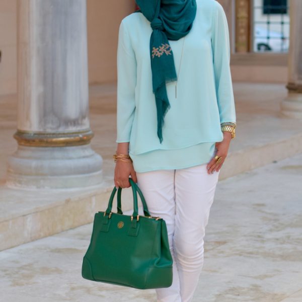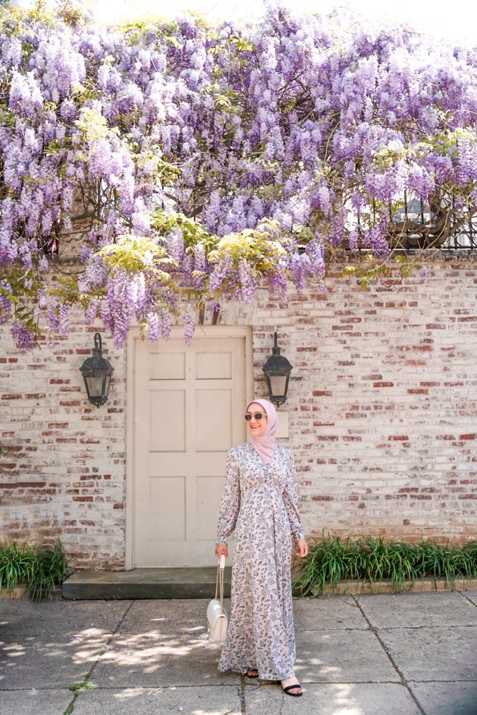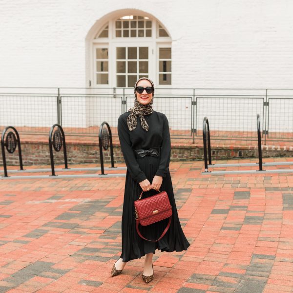 Dress: Gal Meets Glam (old) | Scarf: Haute Hijab | Bag: Kate Spade | Sandals: Sarah Flint | Sunnies: Anthropologie
