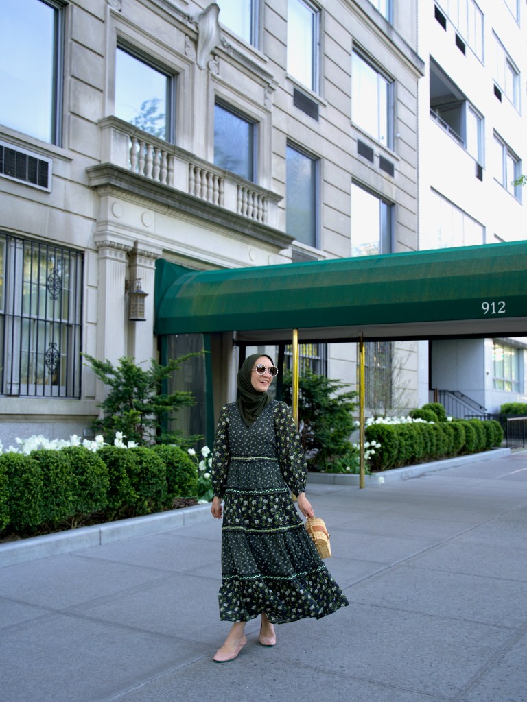 Dress: Anthropologie | Scarf: Haute Hijab | Sunnies: Lele Sadoughi | Flats: Tieks