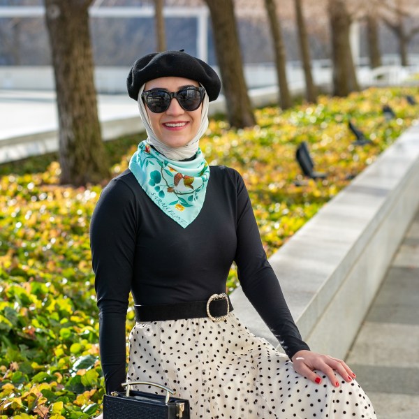 Zimmermann Dress | Haute Hijab Scarf | Senreve Circa Bag c/o | Sarah Flint Mirjana Wedge