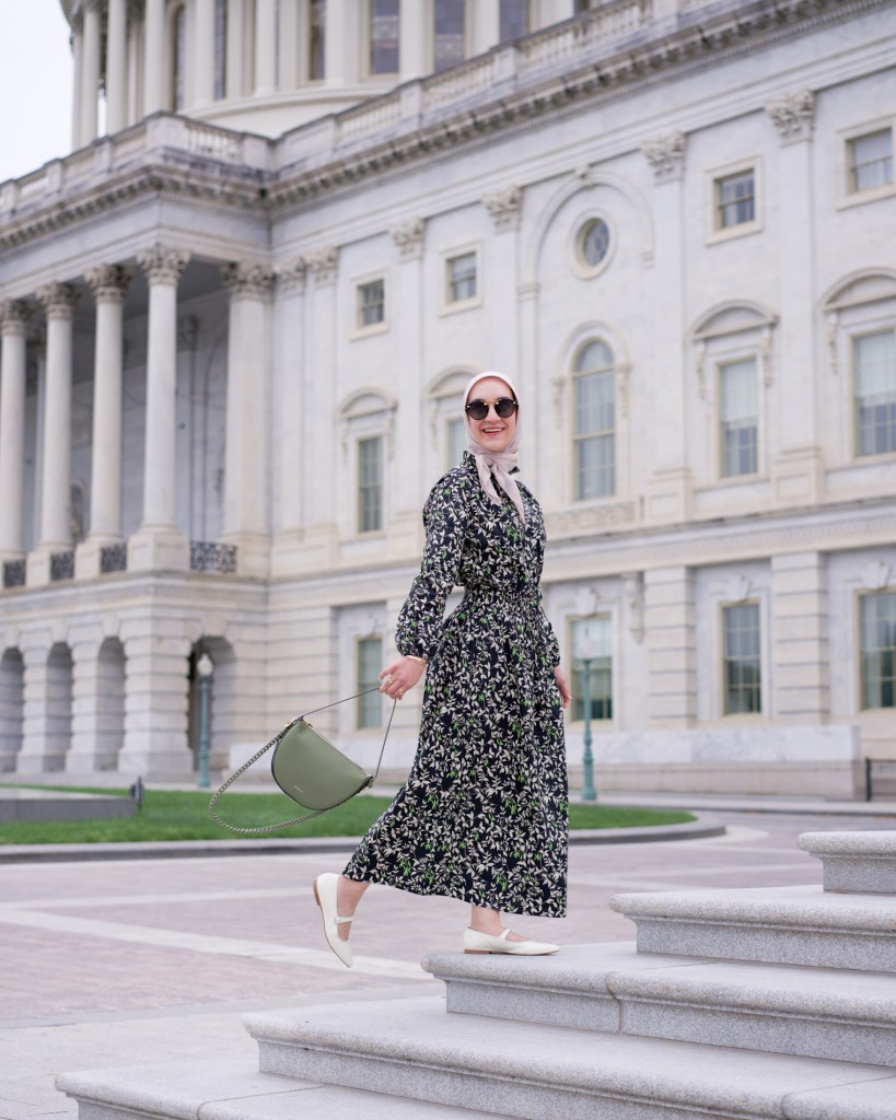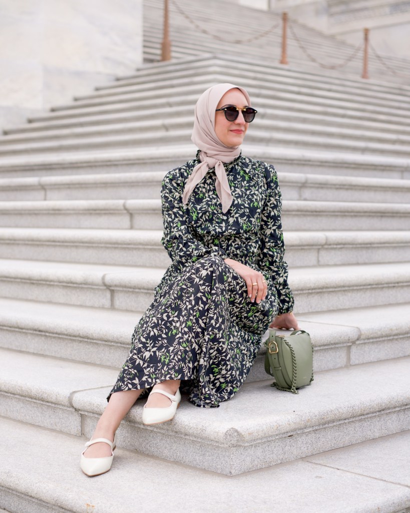Scarf: Haute Hijab | Top and Skirt: Tuckernuck | Shoes: Tuckernuck | Sunnies: Krewe |Bag: Senreve