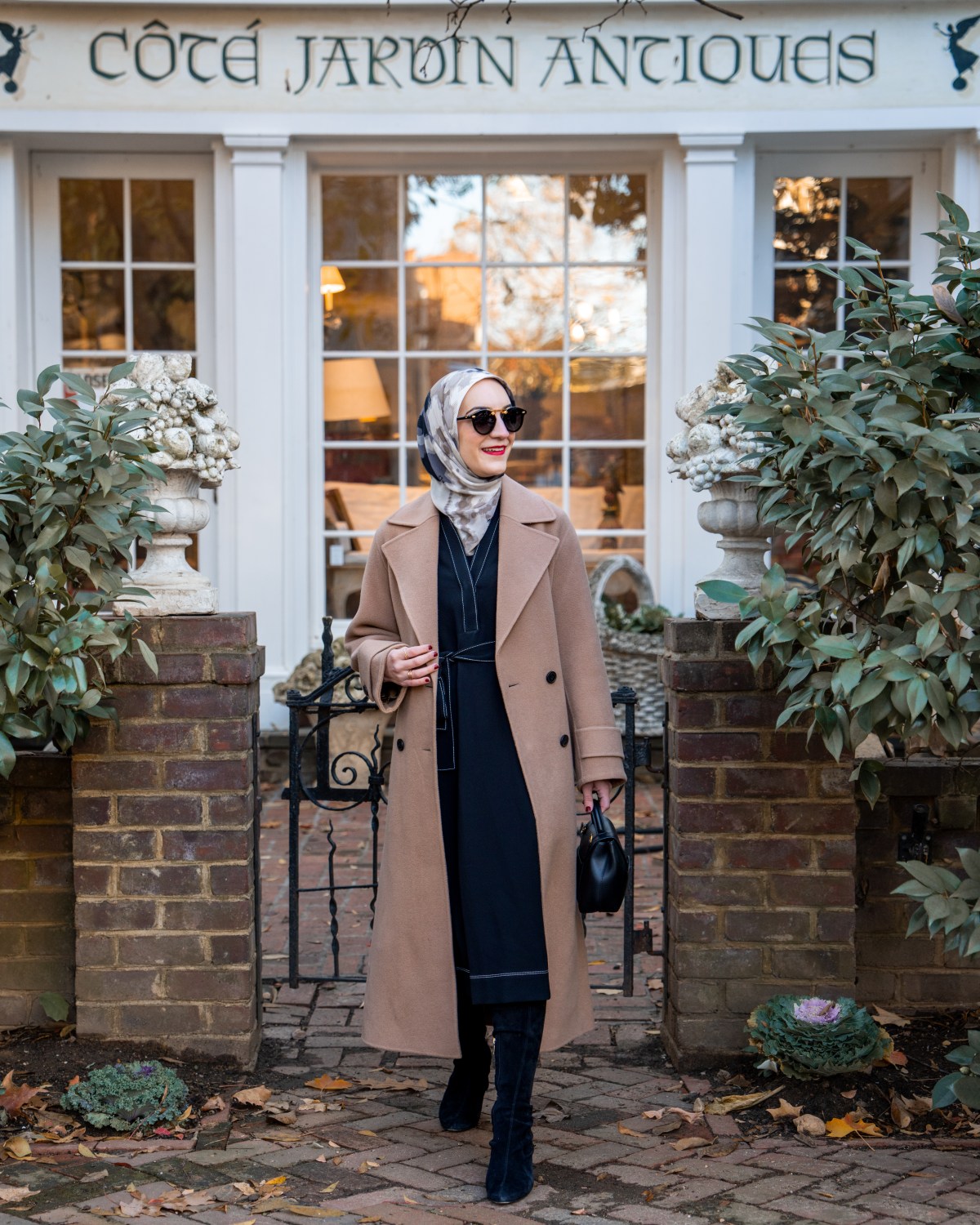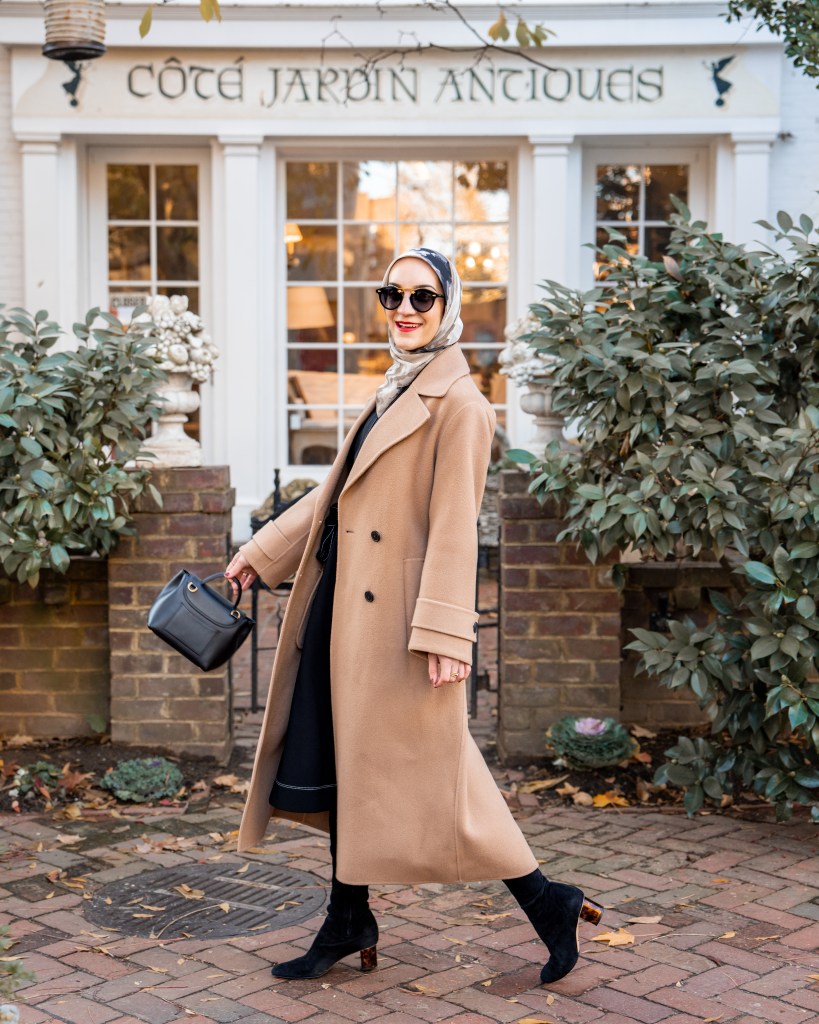 Shop My Look: Coat | Dress | Hijab | Sunglasses | Bag | Boots