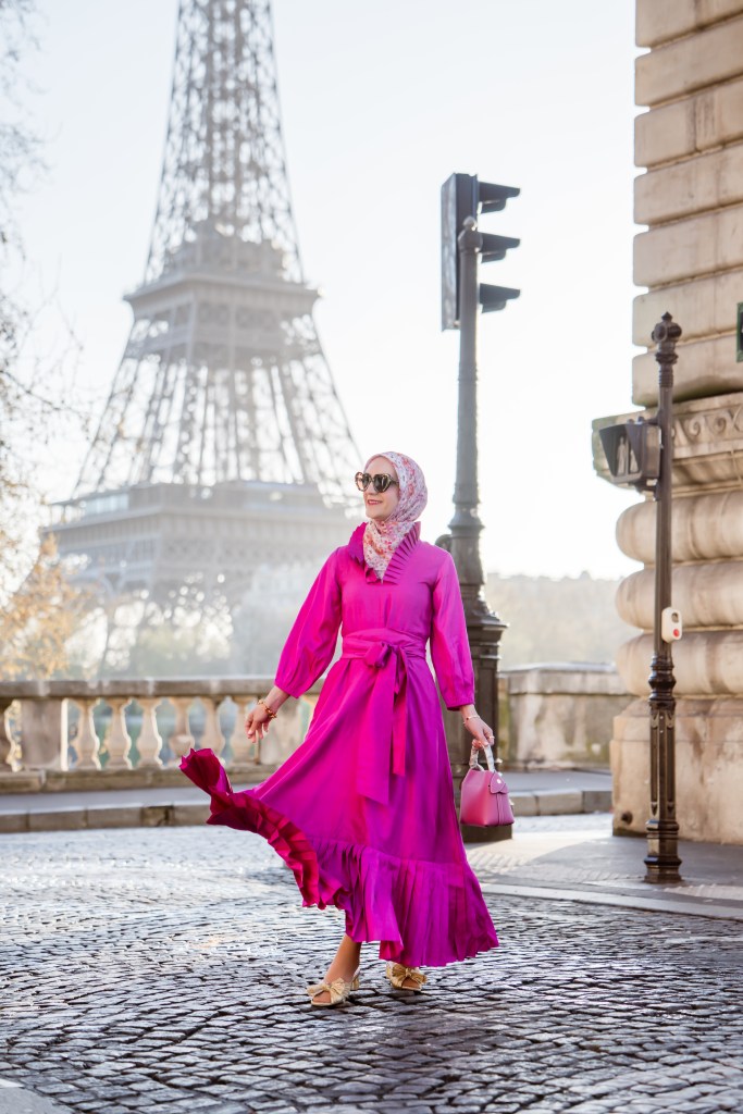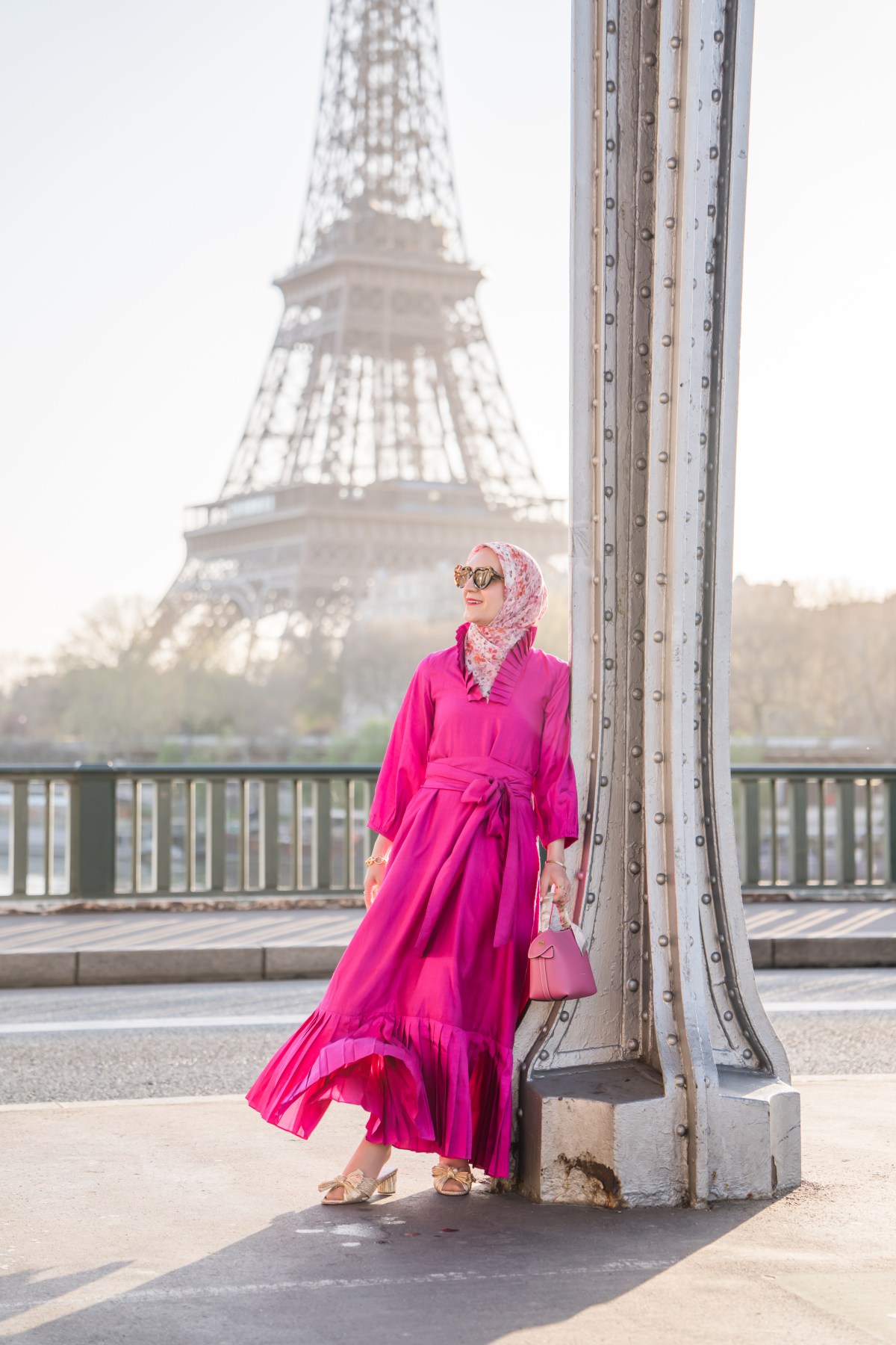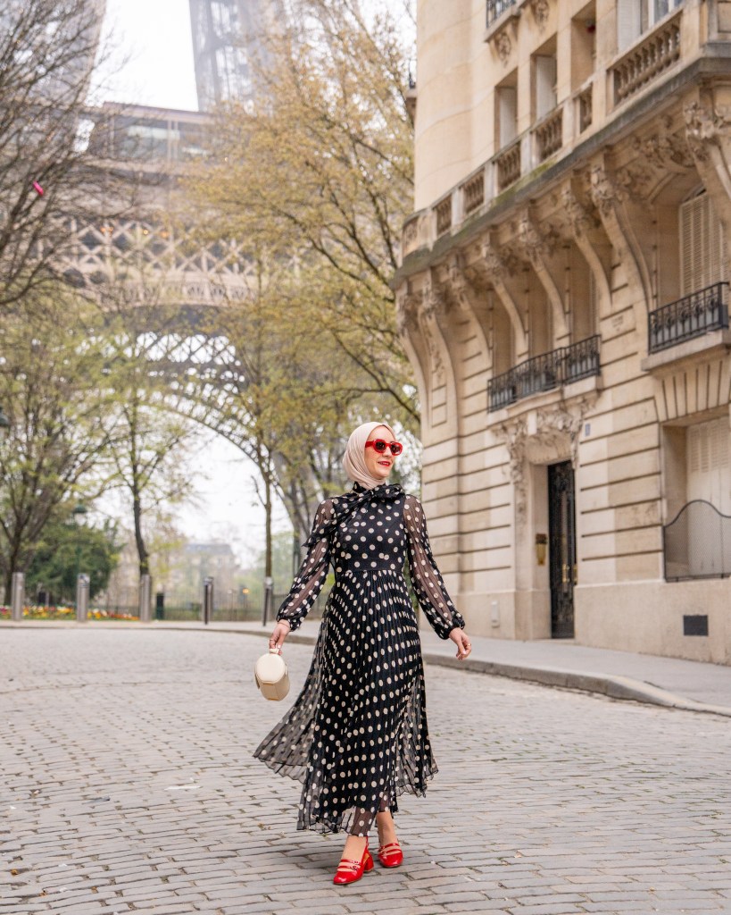 Look 1: Sue Sartor Dress | Scarf: Haute Hijab | Sunnies: Jimmy Fairly | Bag: Fleuron | Shoes: Loeffler Randall