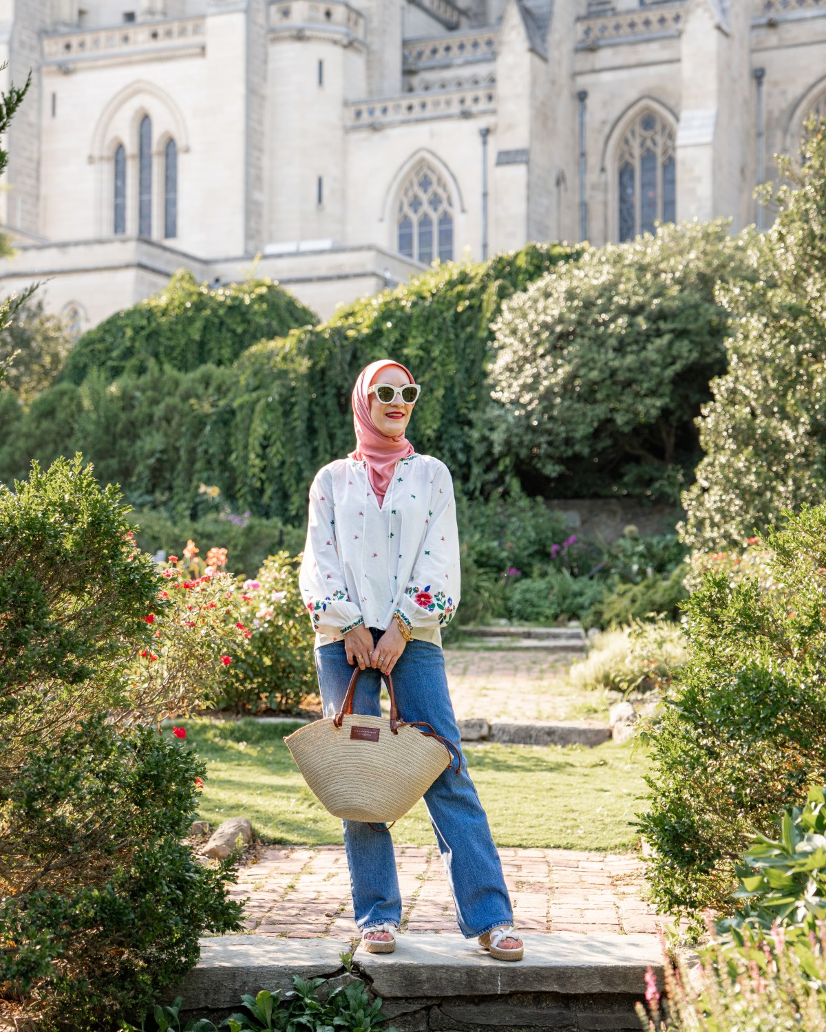 Nothing says effortless summer style quite like florals and a hint of retro flair. I recently styled this dreamy Sézane Aquila floral top with high-rise, wide-leg denim—and the look instantly transported me to a French garden with a touch of ‘70s chic.