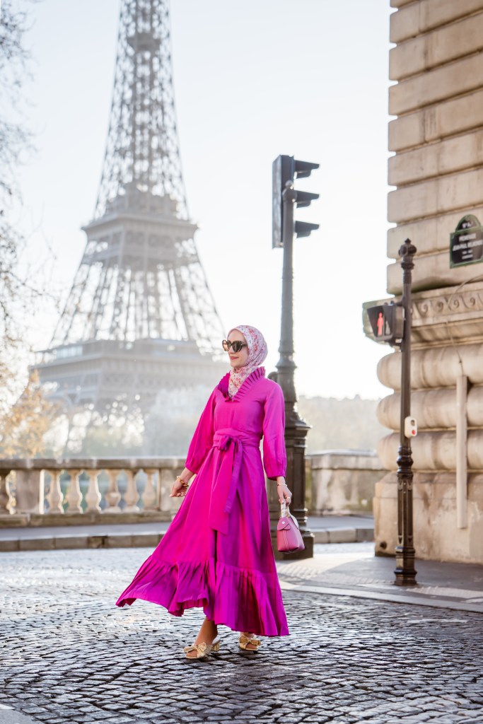 For Paris, the fuchsia silk taffeta maxi was not only a statement but also surprisingly easy to style. I paired it with simple accessories and let the dress do all the talking. It was the perfect “special dress” for a city that deserves nothing less.