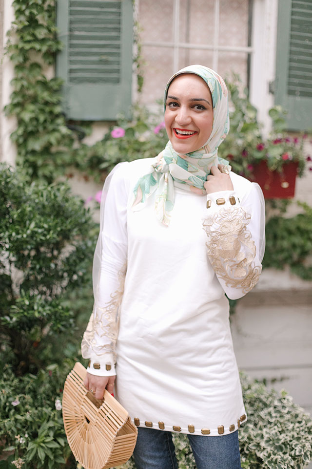 Tunic | Jeans | Heels | Scarf | Bag | Sunnies | Lipstick