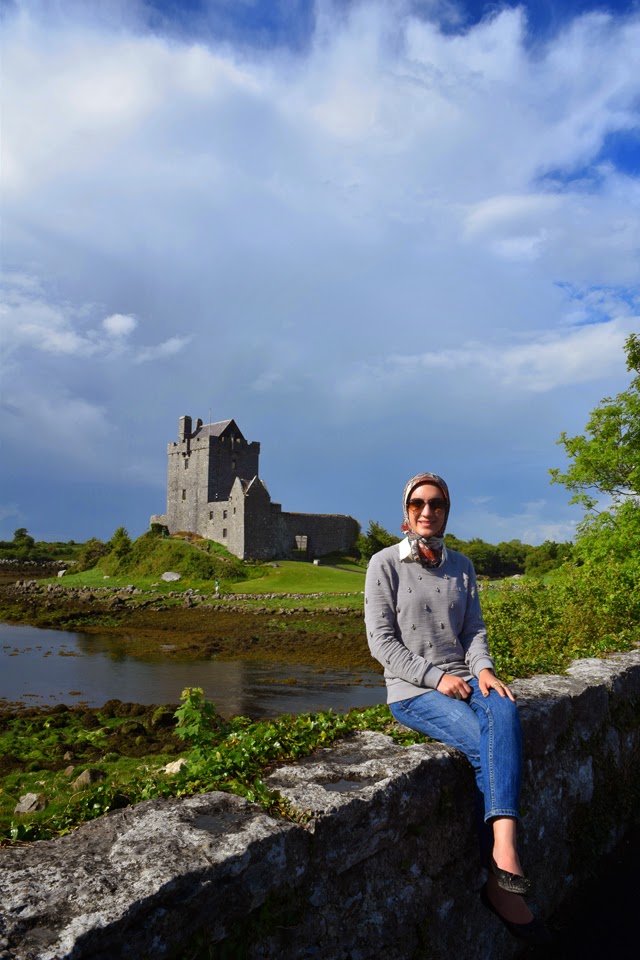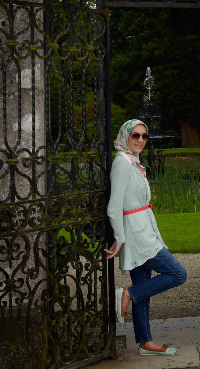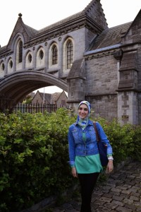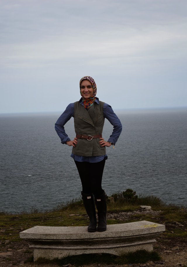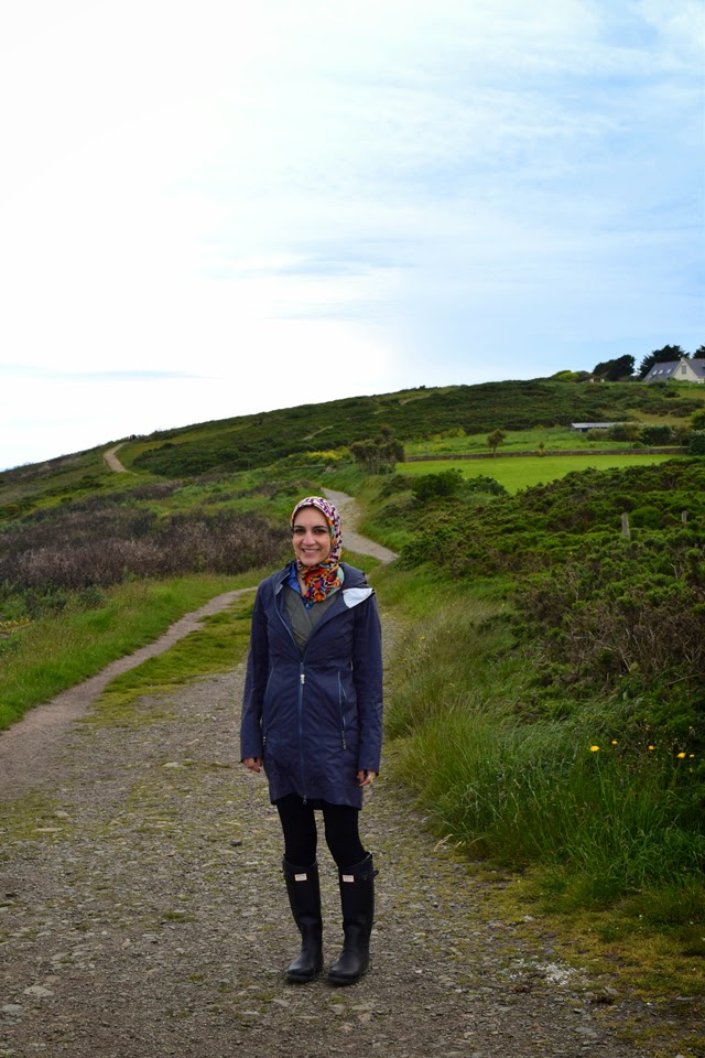 When packing for Ireland I tried very hard to be practical and not over pack! I searched endlessly for fashion tips for traveling to Ireland in June but came up short. All that I found was pack a rain coat and make sure to have an umbrella! There was a definite lack of “Hijabi guide to packing for Ireland.” Therefore I approached packing for Ireland with the solution of layers and practicality. We were in Ireland for 5 days therefore I packed 5 outfits – I mix & matched pieces to save room. In addition I only packed 3 pair of shoes – black Hunter rain boots, mint Sperry boat shoes, and black Sperry flats – and 1 pair of heels to wear to my cousin’s graduation ceremony. I was extremely proud of myself at the airport when I weighed my suitcase and it was only 38 pounds! Yay!